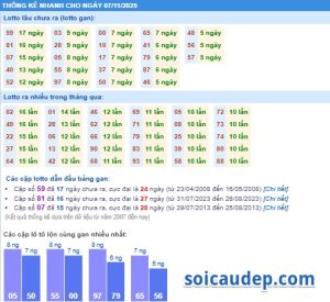 Soi cầu lô chuẩn 247 kết quả miền bắc ngày 07/11/2025